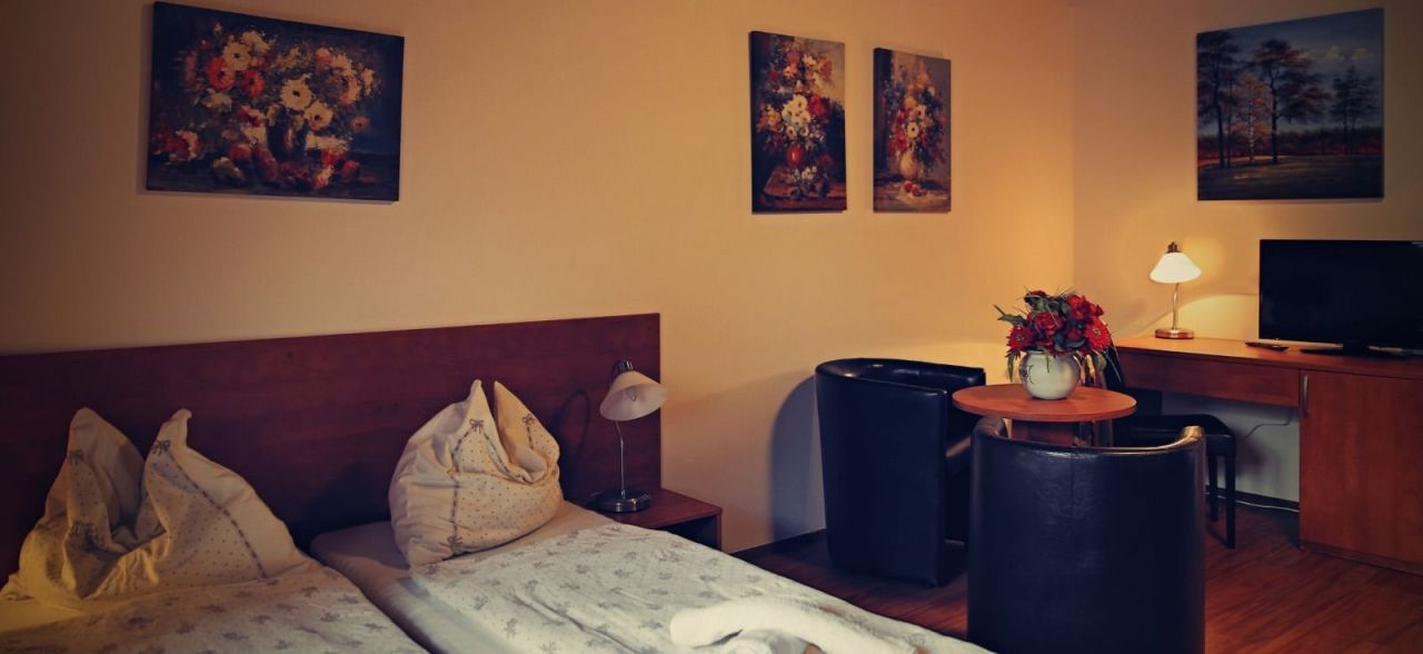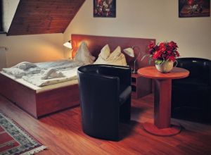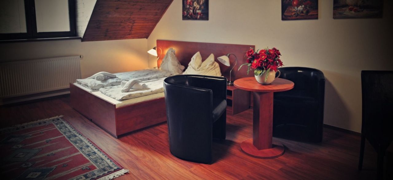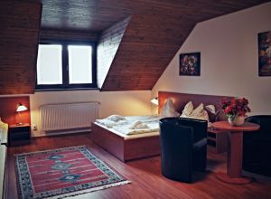 je pokoj pro čtyři osoby zařízený jedním dvojlůžkem a dvěma samostatnými lůžky, konferenčním stolkem se dvěma křesílky, televizí, psacím stolem se židlí a šatní skříní. Koupelna je vybavena sprchovým koutem a toaletou.